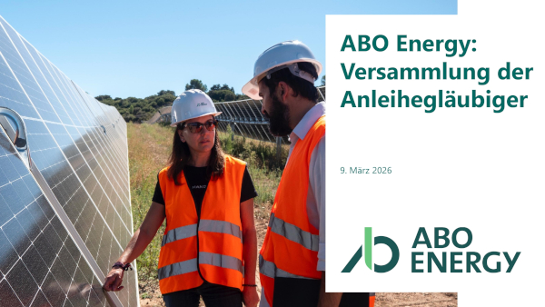 Am 9. März fand im Gebäude der IHK in Wies­baden die zweite Gläubiger­ver­sammlung der Anleihe­gläubiger des 7,75% ABO Energy GmbH & Co. KGaA-Green Bond 2024/29 (WKN: A3829F, ISIN: DE000A3829F5) statt.